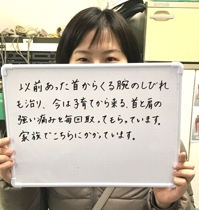 首や肩の痛み、痺れが楽に!家族でお世話になっています
